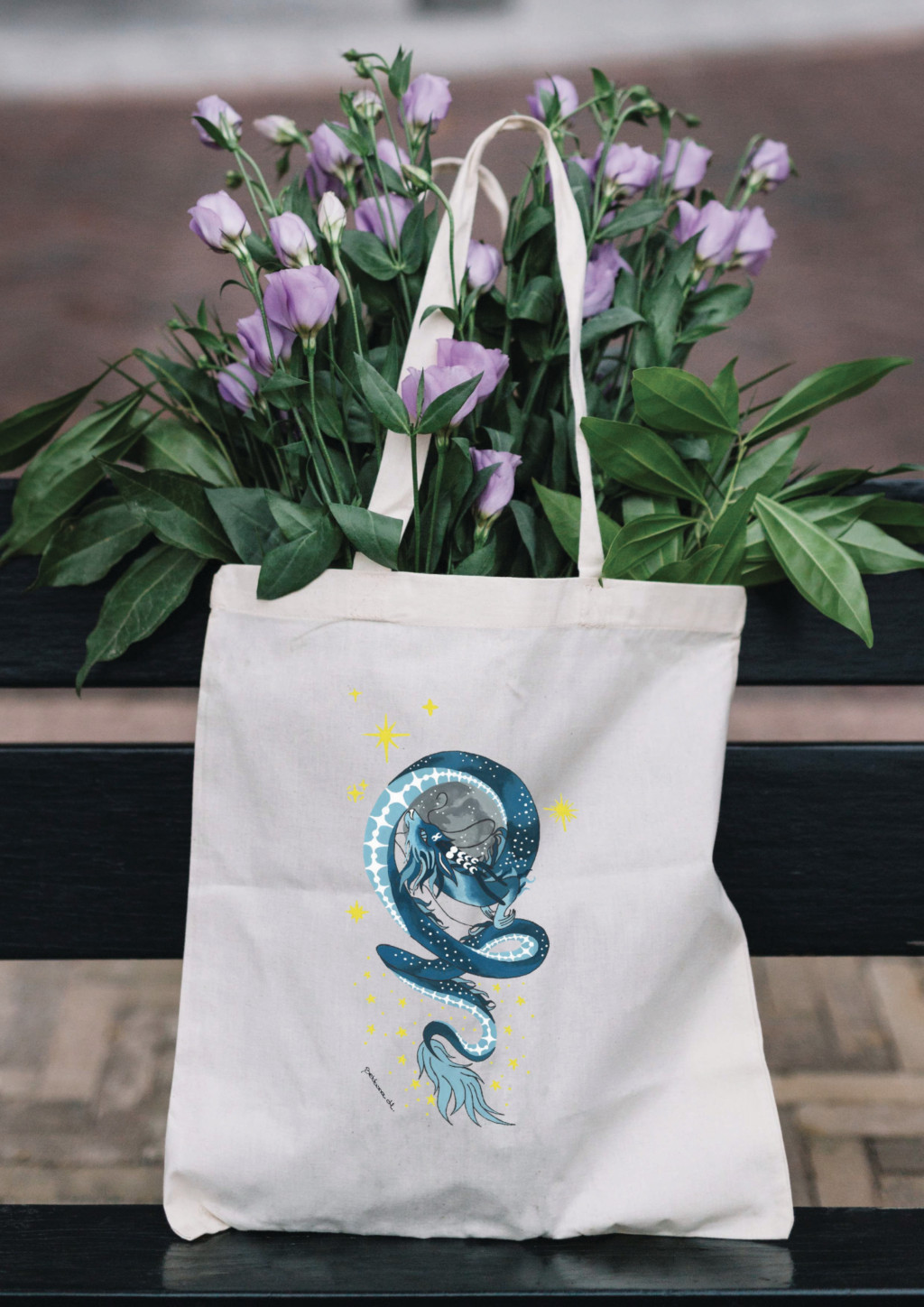 A sárkány rajongóknak kedveskedünk ezzel a mintával, ami a jámbor és jóságos kínai sárkányt ábrázolja az éjszakai égboltot idézve, ahogyan a holdra vigyáz a csillagok ölelésében. A kínai sárkányok a béke, a jólét, a gazdagság és a szerencse szimbólumai, valamint régen a császárt jelképezték.